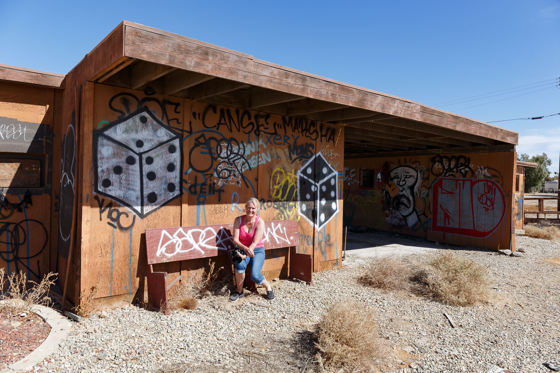 Today, the place is like a ghost town, although not entirely deserted. There are still people living there . . . but not many. Bombay Beach history is quite fascinating, if not sad. Once a hopping lake-side community of around 500 homes, RVs and trailers, now has, perhaps, no more than 50 occupied dwellings. The rest is . .  a mess. Rusted-out trailers, houses in ruins and plastered with graffiti, trash and garbage everywhere and old, rusted, cars without engines or tires on every corner. This is “Urban Decay” at its worse, yet it represents a goldmine for photographers. As Linda and I drove through town, we saw numerous people doing the same, cameras out, shooting the sights of this once bustling and thriving community of vacation homes and fishing cabins. The visit left us sad and disturbed, yet happy with the shots we got.